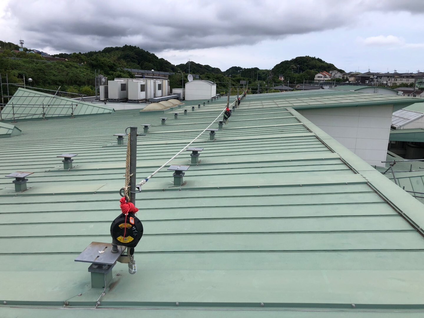 軒先には安全ブロックを設置して、墜落防止の対策も行いました。